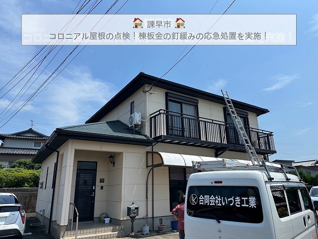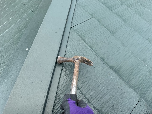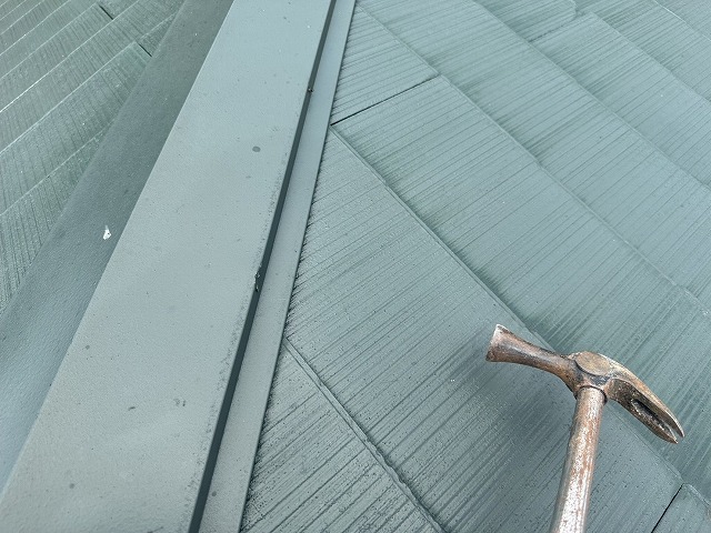 諫早市でコロニアル屋根の無料点検!棟板金の釘緩みを発見し応急処置を実施しました