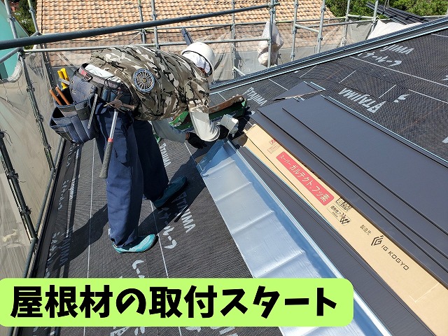 可児市星見台にて、ガルテクトフッ素の荷揚げから本体施工まで!金属屋根の精密施工を進行中!