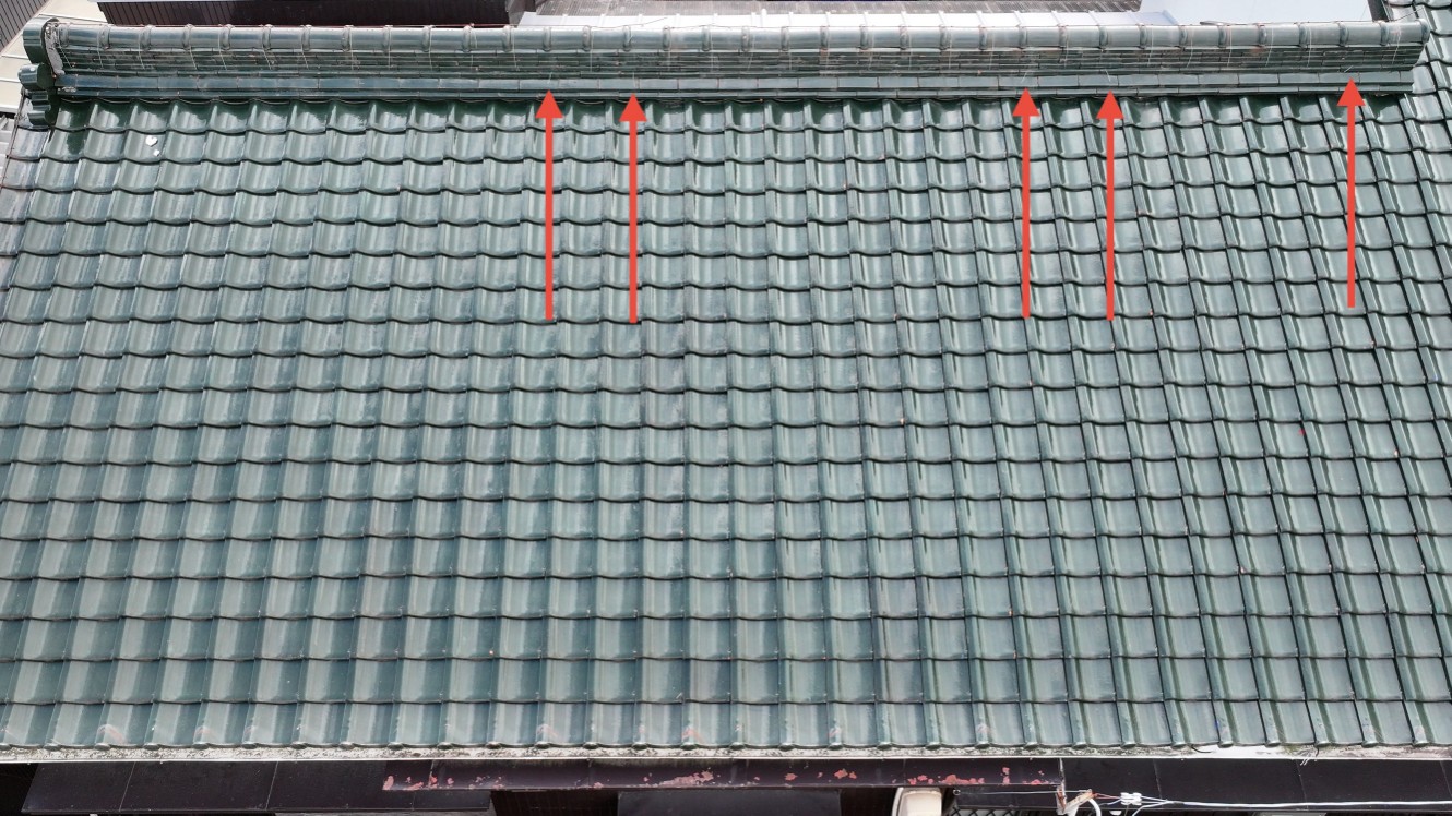 そこを支えるために、棟瓦(むねがわら)は針金やワイヤーでしっかり固定されていることが多いです。