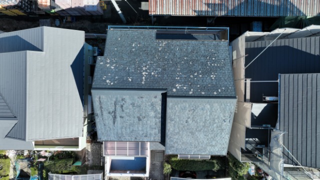 “できればあと15年はこの家で過ごしたい”とのご希望に応えるため、まずはドローンで屋根全体を調査しました。