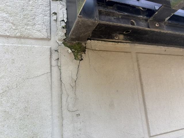①窓周りが集中的に傷んでいる②表面塗膜は残っているのに、下地ごと崩れている➂コケ(緑色の藻)が発生しているこれらは長期間にわたり内部が湿潤状態だったサインです (>_<)