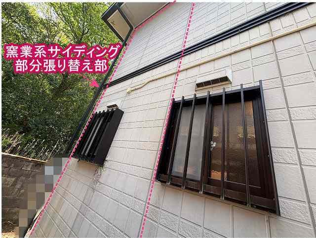 ぱっと見た限りでは大丈夫そうに見えたんですが... 左側の窓下部(浴室面)をよく見たら、サイディングが他とは違い、なんだかボロボロ(^_^;)