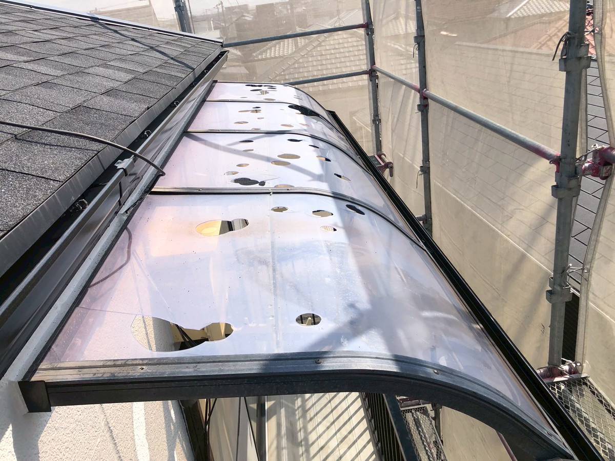 今回は、1階のペアガラスが割れてしまったこと、さらにベランダのポリカーボネート屋根に穴が開いてしまったことで、お客様からご相談をいただきました。