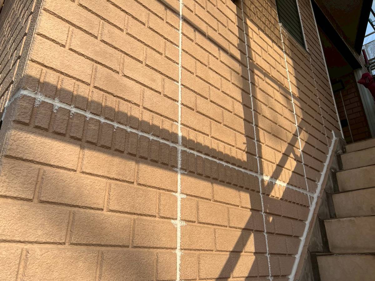 壁面の溝(目地)に沿って複数本シールが施工されており、しっかりとした施工が見て取れます。