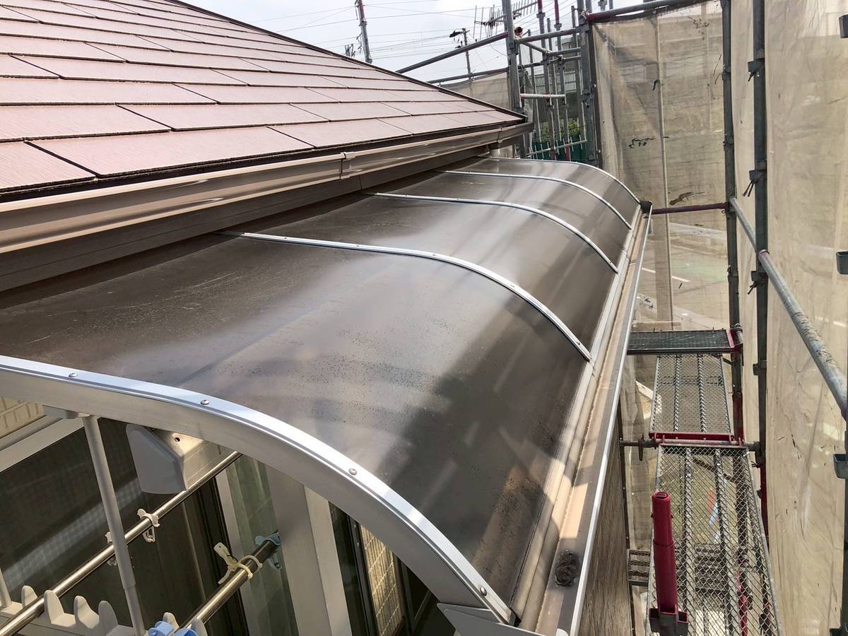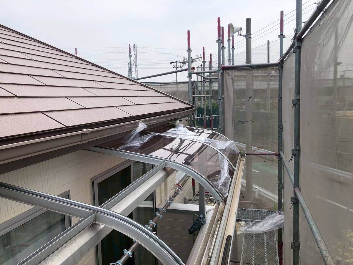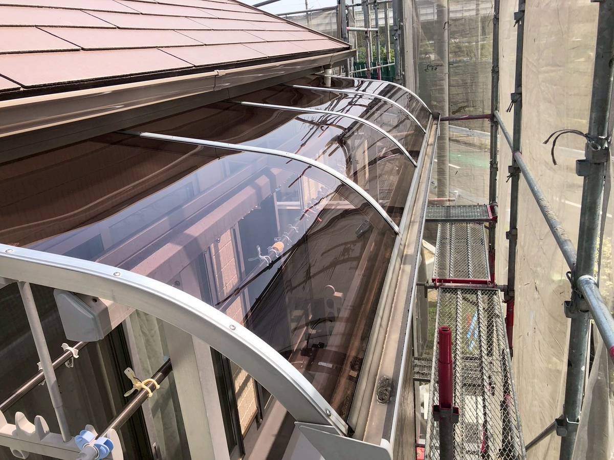明石市 雨樋の塗装とポリカ屋根の張り替え工事を実施!豪雨・台風対策!