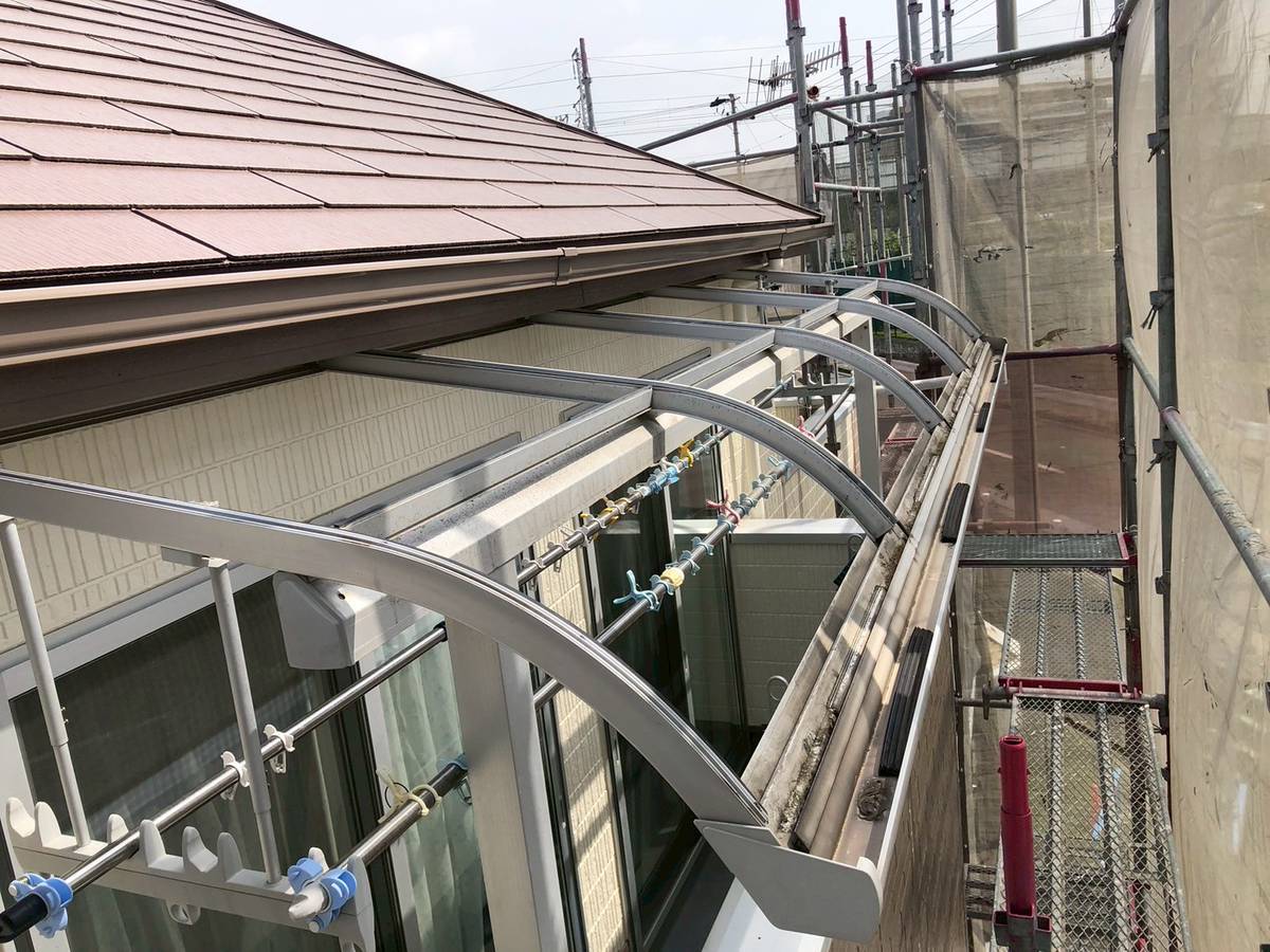 お客様からは「雨樋の色あせとベランダ屋根の劣化を改善してほしい」とのご相談。