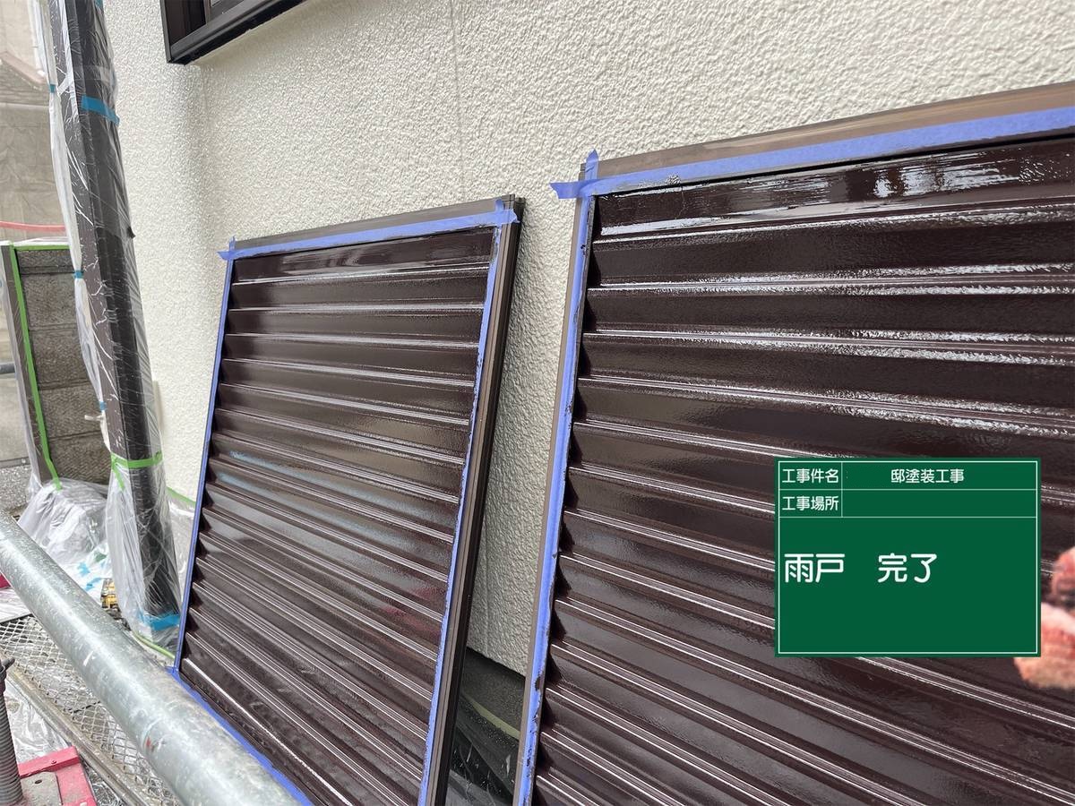 塗装が完了した雨戸は光沢感もあり、新品同様の美しさ。