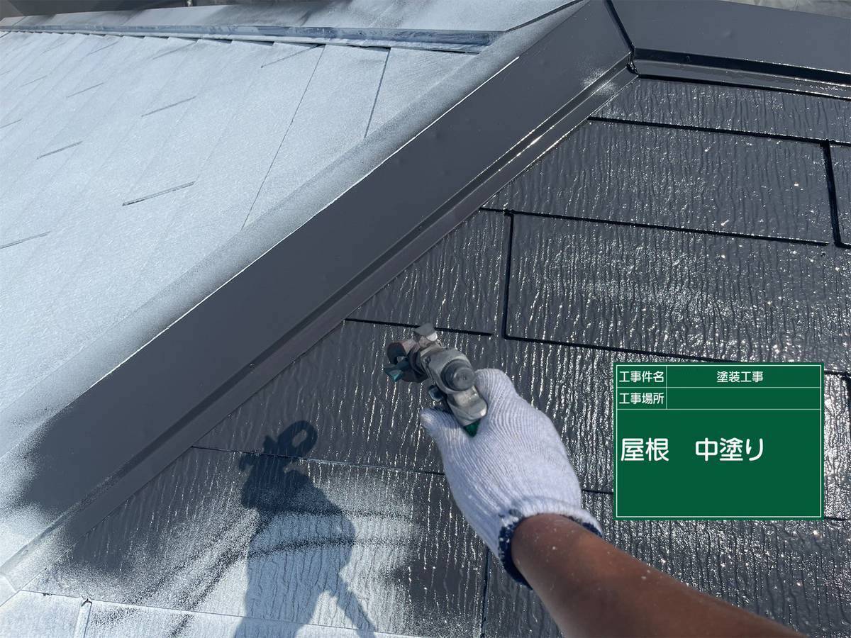 神戸市西区 屋根塗装工事の続き中塗り・上塗りと下地補修の様子をご紹介