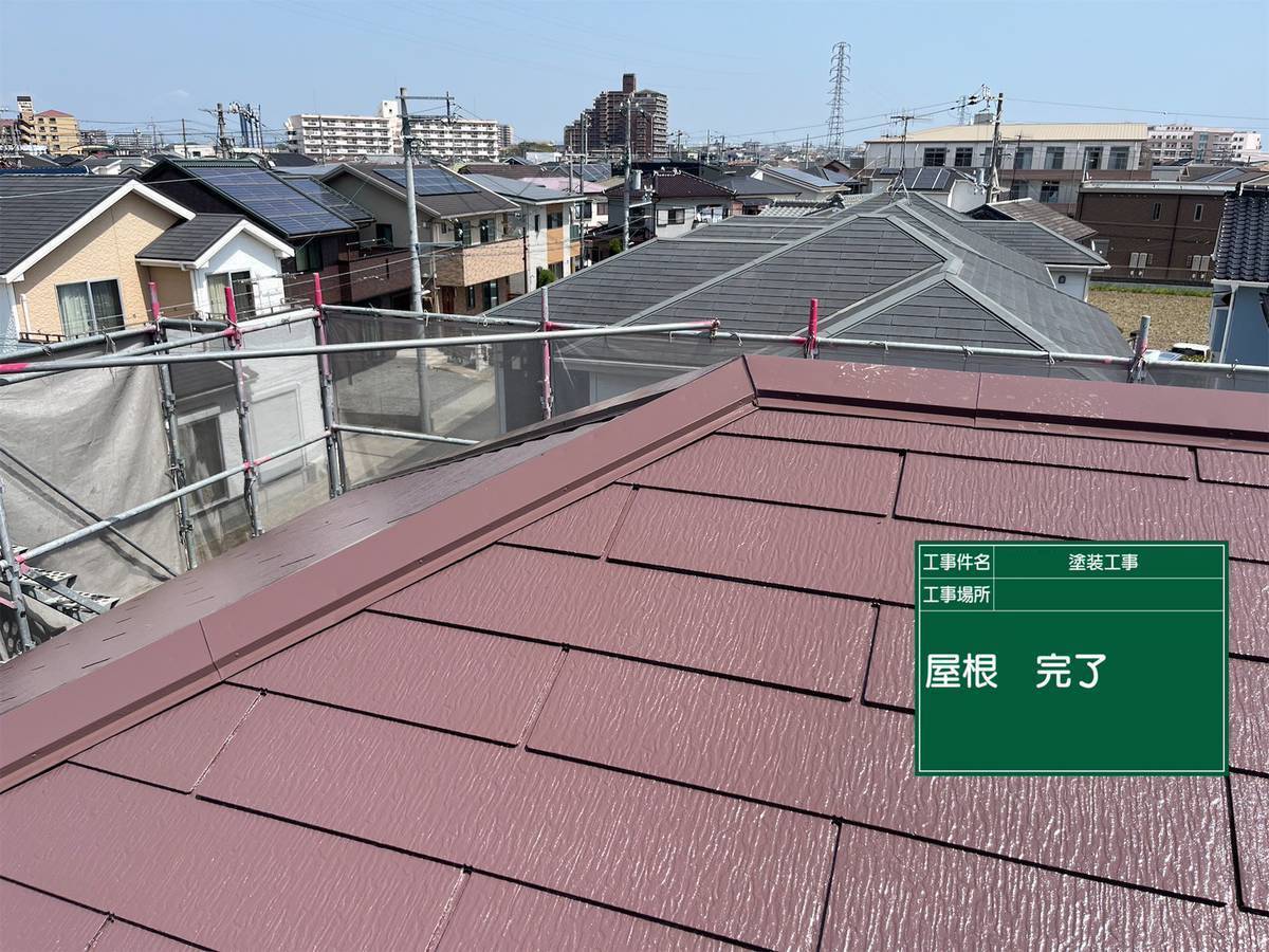 塗装がすべて完了した屋根の全景です。ツヤのある美しい仕上がりになりました。