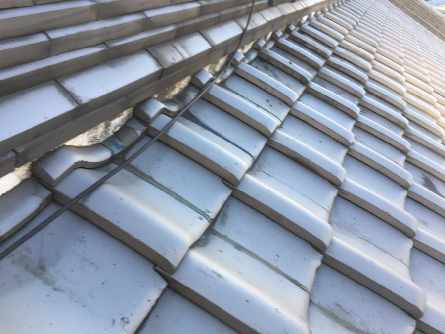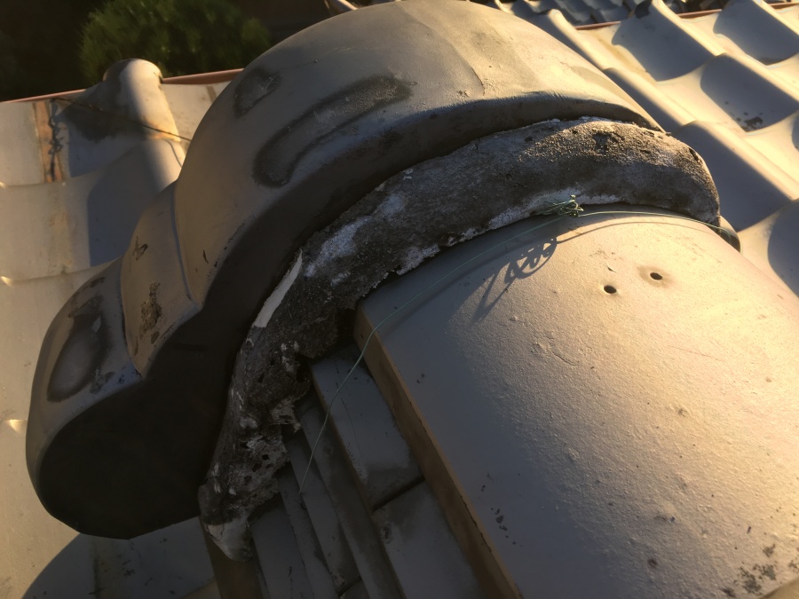 築年数が経っている瓦屋根の場合は、漆喰が経年劣化して剥がれてくると、上写真のように瓦屋根の下地に施工されている葺き土がむき出しになってしまいます。