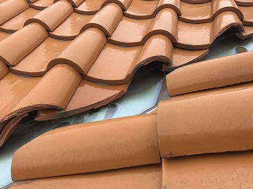 屋根材は釉薬(ゆうやく)S形瓦で葺かれた屋根です。