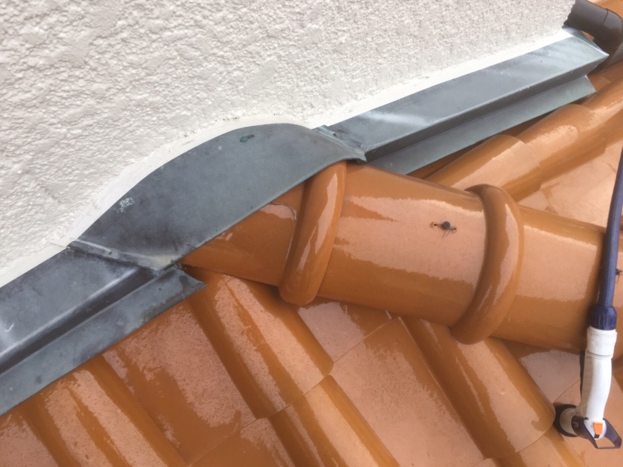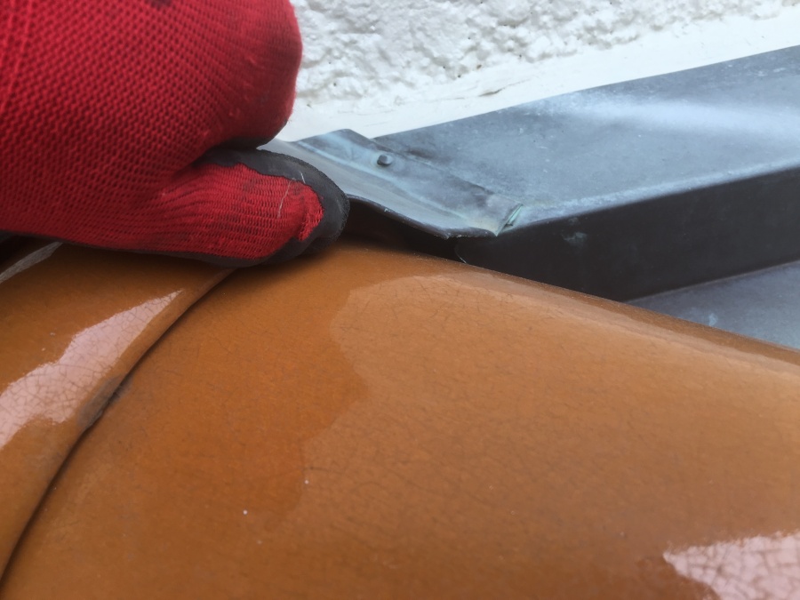 実は釉薬(ゆうやく)瓦の釉薬(ゆうやく)には銅を溶かす性質があり、この2つの材料を接触してしまうと『電食(でんしょく)』が起こり穴を開ける程の腐食を起こしてしまいます。