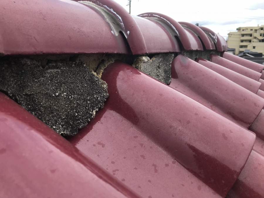 棟の下地を守る漆喰が剥がれ落ちてきている状態でした。