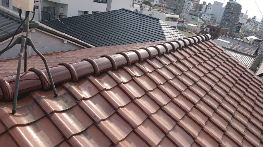 神戸市中央区×漆喰で瓦屋根の防災施工 ①棟瓦の解体