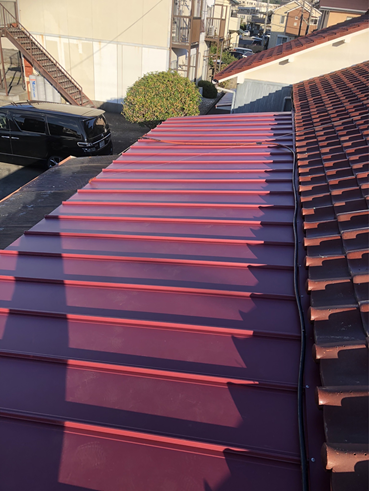 今回の屋根は、既存の瓦と同系色のトタンを選び、屋根全体の美観を損なわないよう配慮しました。