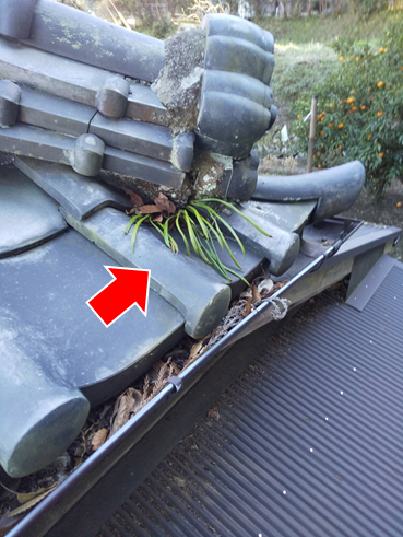 そして厄介なのは、この雑草の根がさらに漆喰の隙間を広げ、内部の土台(土葺きの場合)や葺き土を崩してしまうことです。