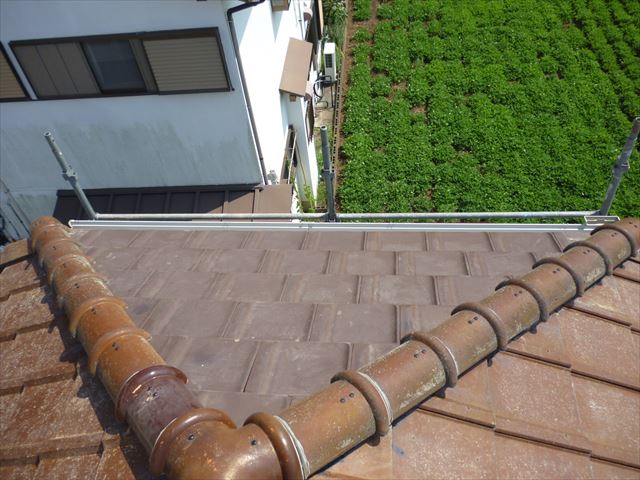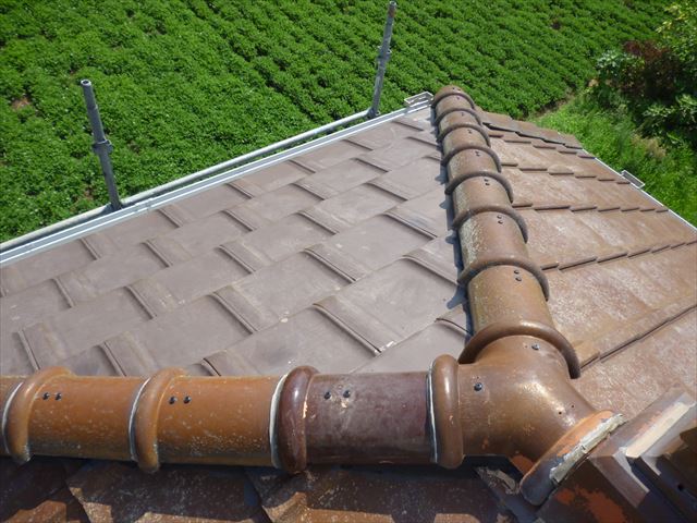 また、三角になっている屋根部分の平瓦の葺き替えですが、棟の部分と重なっている