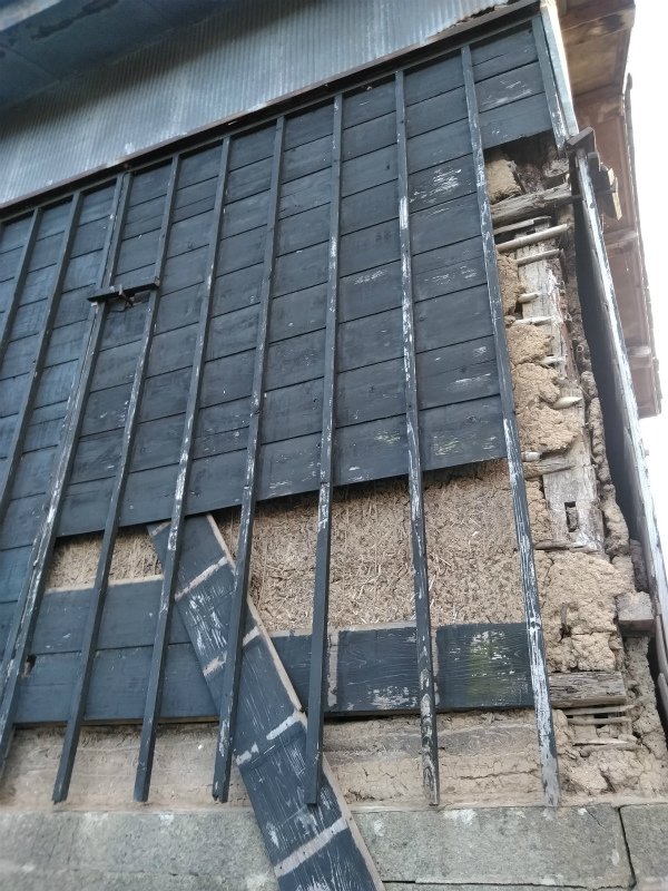 外壁の板も、長年の風雨でかなり剥がれてしまっていました。