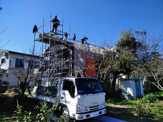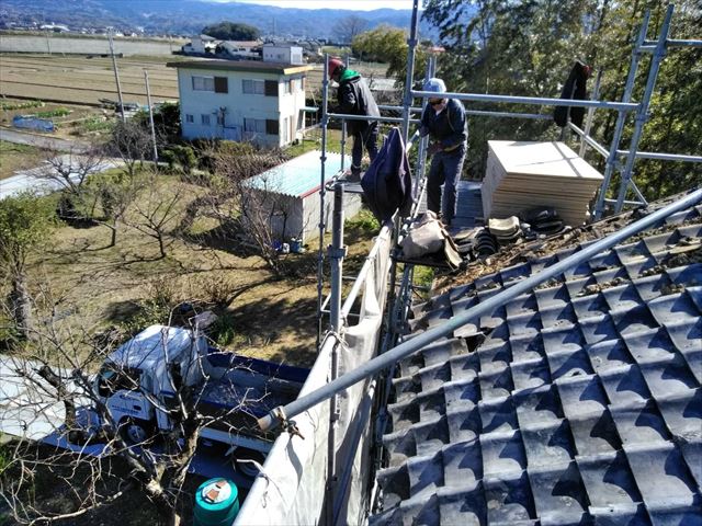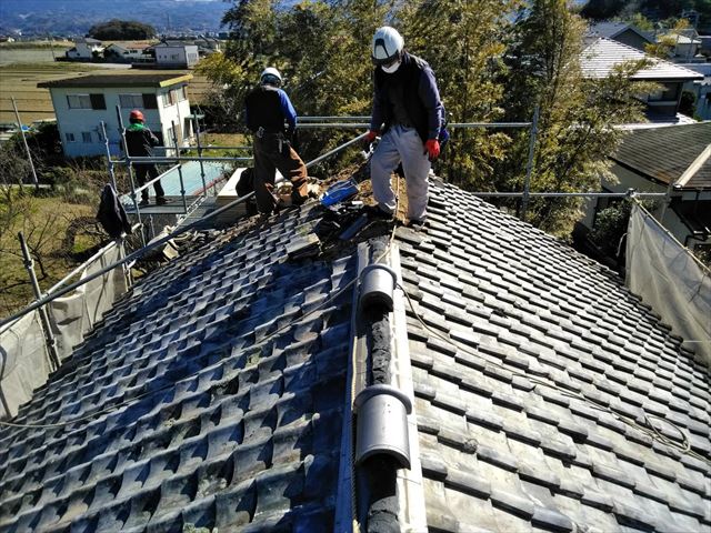 沼津市で農家さんの倉の屋根を和瓦から板金に葺き替えました。
