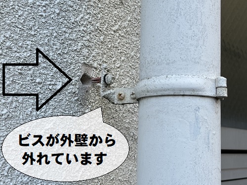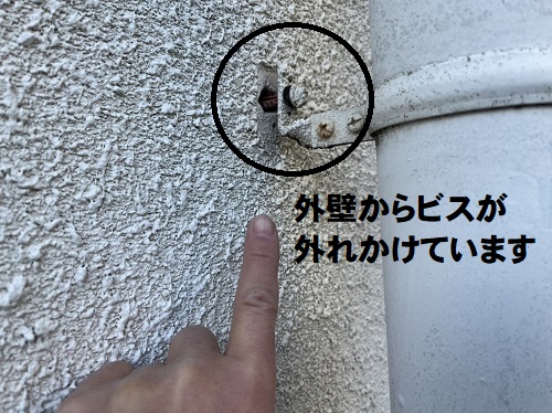 そして、2箇所目は取り付け部のビスが外壁から外れかけていました。