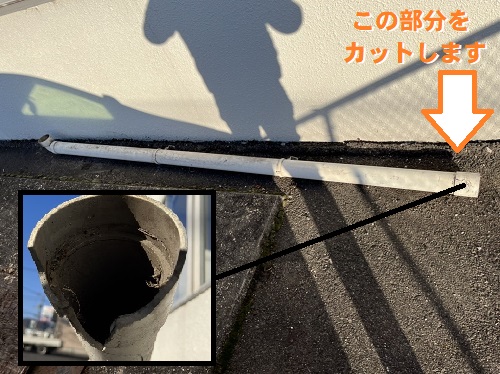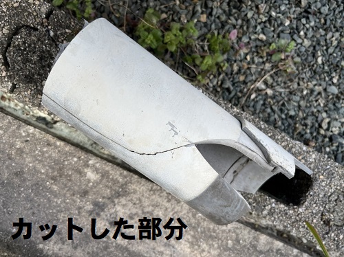竪樋の長さが若干短くなりますが、水漏れを回避する為にも既存の竪樋をカットする方法をとりました。