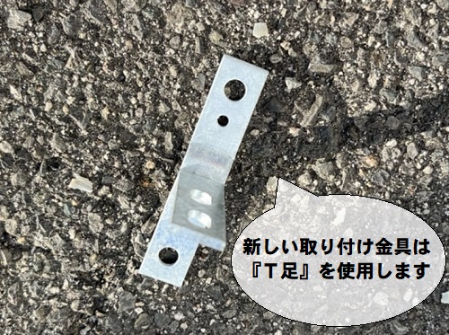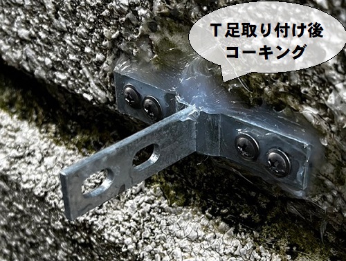 次は、外壁に付けたT足に固定バンドを取り付けていきます。