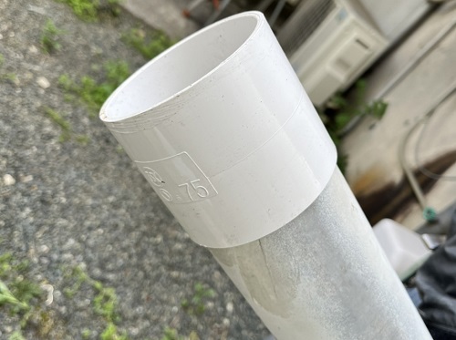 まずはソケットを新しいものに取り替えますが、竪樋にもクラック(ひび割れ)が入っている為水漏れの心配があります。