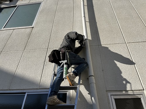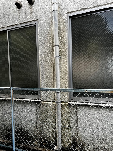 ホーム > 福山市にて会社敷地内の外れた竪樋(たてどい)の補修・固定作業…