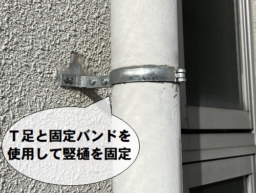 T足を2個、固定バンドを2個とソケットを新しいものに交換し、竪樋の補修工事が完了しました。