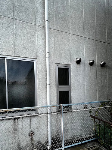 2箇所の竪樋の補修工事のご依頼をいただきましたので、工事の様子を写真とともに解説していきます。