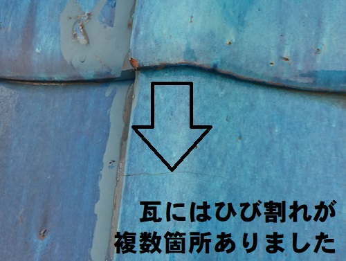 30~40年前に人気だった青緑(せいろく)色の瓦には薄いひびが多数見受けられました。