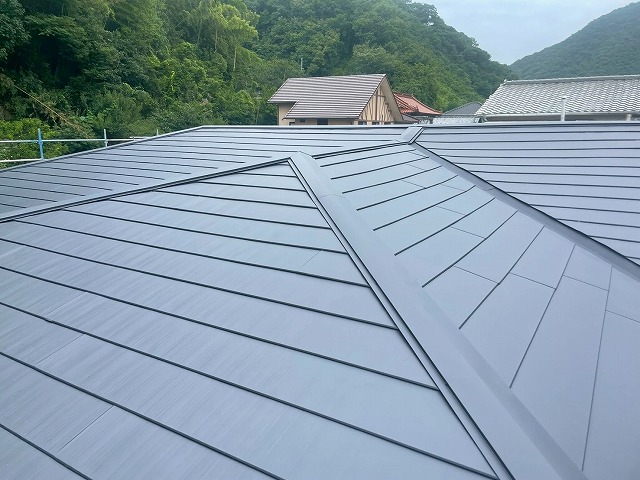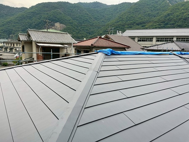 スレート屋根の上にガルバリウム鋼板でカバー工事を行いました。