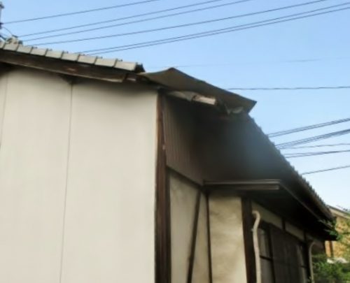 車庫の屋根が古くなって強風に煽られるためやりかえたいとのご相談を頂きました。