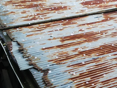 原因:車庫のトタン屋根はぼろぼろに錆びており、留め釘が
