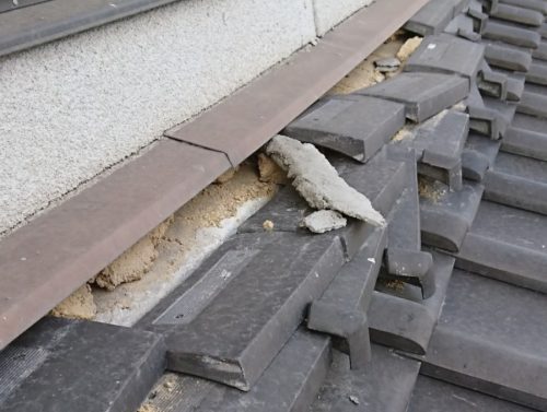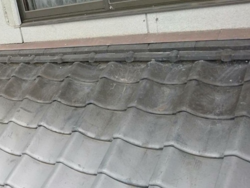 福山市で台風による強風で落ちた袖瓦(屋根の端部の瓦)の葺き直し工事事例です。