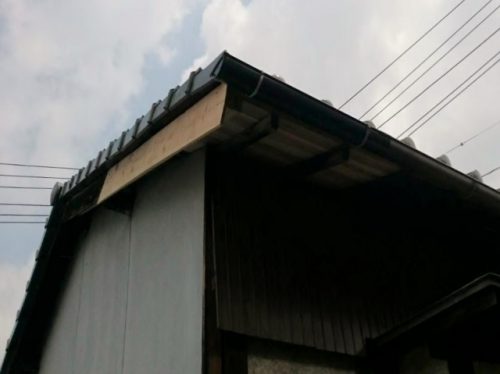 強風によりめくれあがった板金の下からは垂木が見え、少し雨水がかかっているようでした。