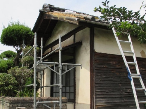 南蛮漆喰(なんばんしっくい)を使い袖瓦(ケラバ)の葺き直しを行いました。