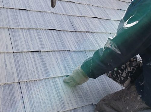 スレートの屋根をローラーなどで塗装を行うと、スレートとスレートの重ね目に塗料が入り込み、そのまま乾燥すると重ね目が塞がった状態になります。