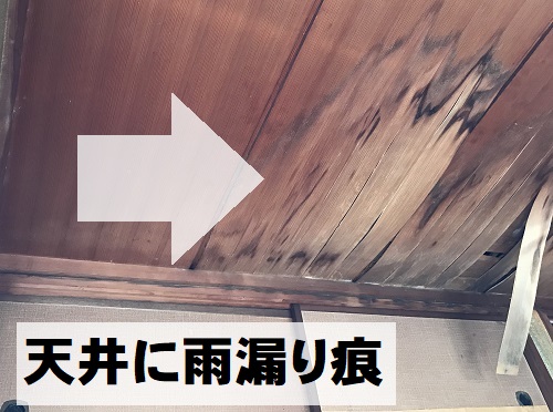 「しばらく空き家にしていた間に雨漏りしていたんです。応急処置をしてみたけど、もうどうにもならなくなったので見てほしいです。」とのことでした。