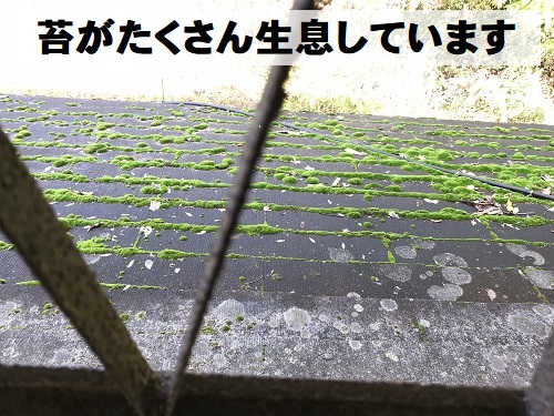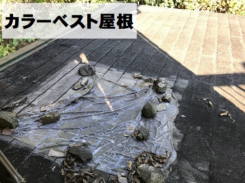 屋根材の種類はカラーベストです。ビニールシートが屋根の上に敷かれていることがパッと見て確認できました。