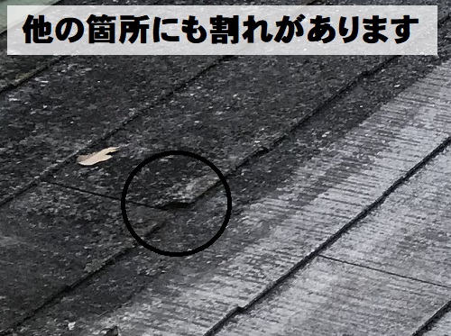 応急処置されていない箇所のカラーベスト屋根材にも割れを確認いたしました。