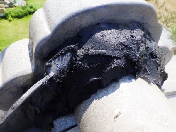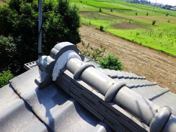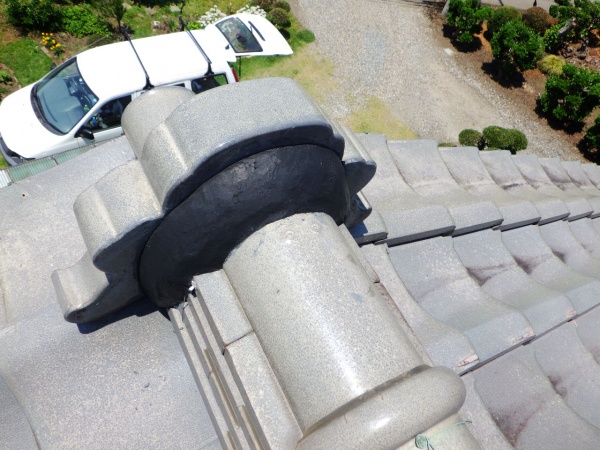 鬼首に巻いてある漆喰にひびが入り、鬼首と漆喰の間に隙間が出来ている状態で