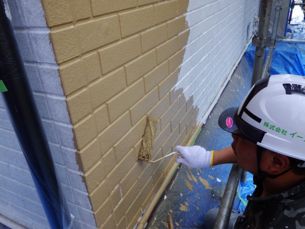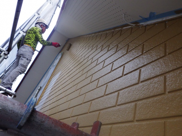 真岡市で窯業系サイディングの中、上塗り塗装をしました。