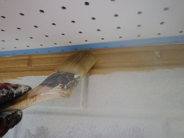 ローラー塗装では塗料だまりになりダレますので、刷毛で塗料を塗り込んで