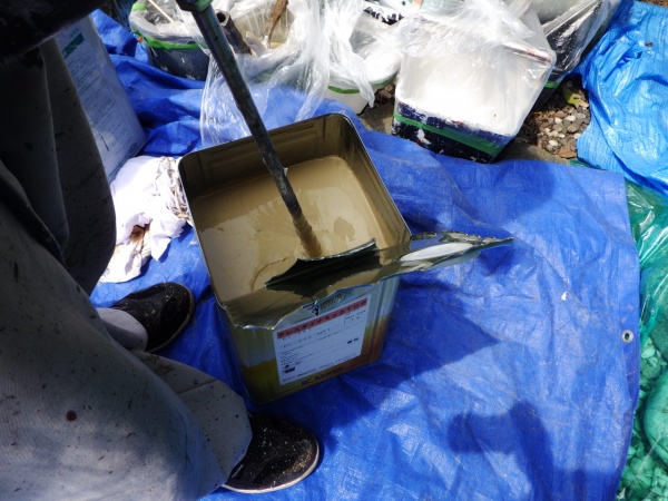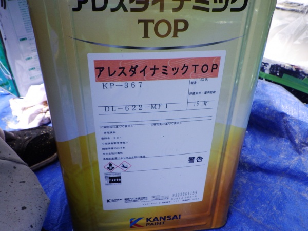 関西ペイントのアレスダイナミックTOP KP-367で既存外壁塗料の効力を無くし、塗料本来の耐候性や耐久性を実現します。 清水を5パーセント入れ、十分に撹拌して使用します。