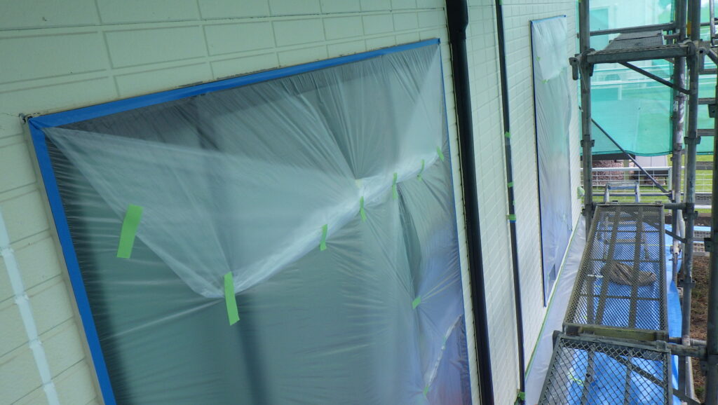 塩谷郡高根沢で窯業系サイディング塗装の養生作業をしました。