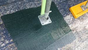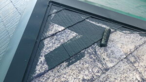 タスペーサーと呼ばれる雨漏り防止用の部材をスレート屋根同士の間に入れていく事で、隙間が出来ます。
