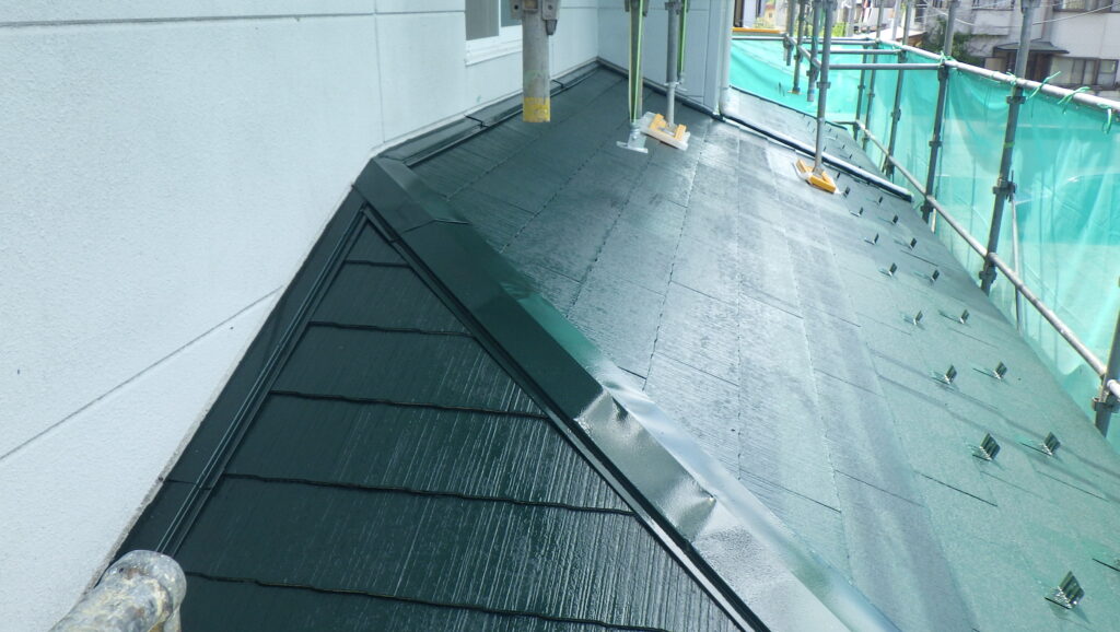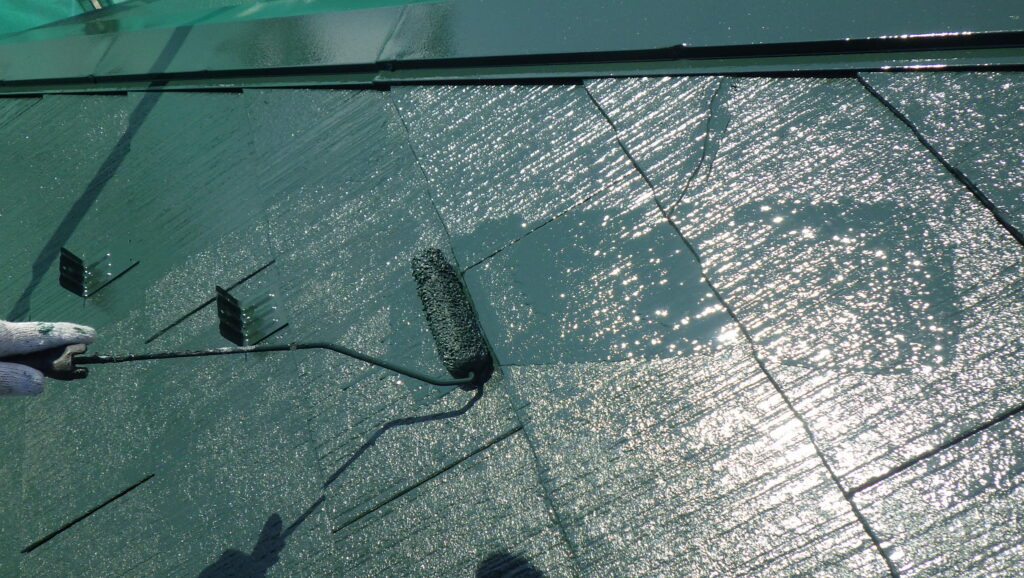 宇都宮市の屋根塗装工事でスレート屋根の塗装に入り完工しました。