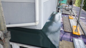 金属製で出来ている出窓の庇板金をケレン施工、下・中・上塗りを行い終わりました。