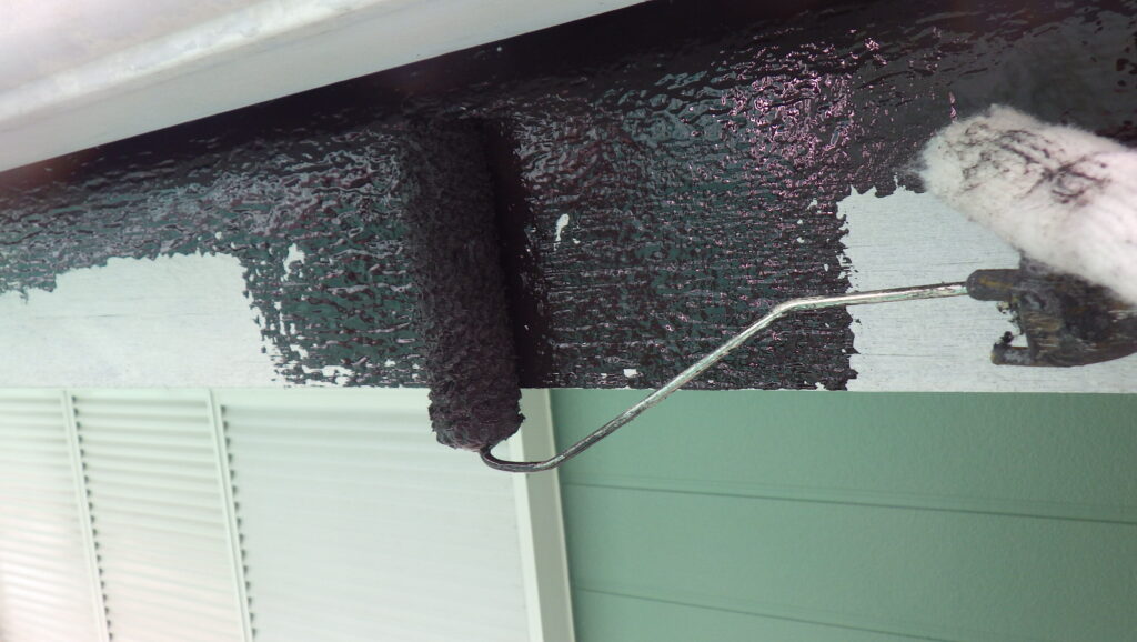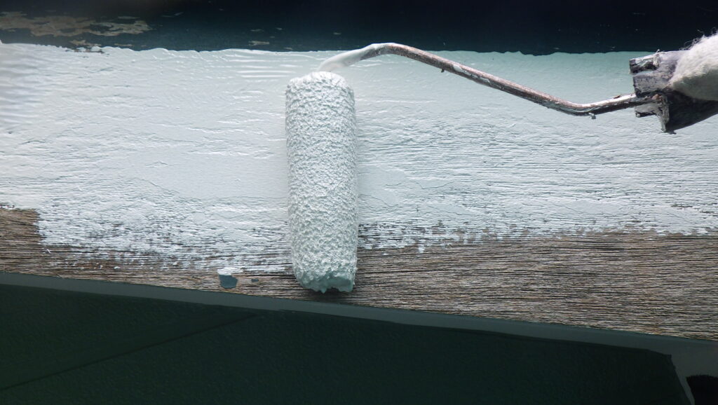 ローラーにつける塗料の量を調節しながら、塗膜が均一になるよう塗料を配っていきます。